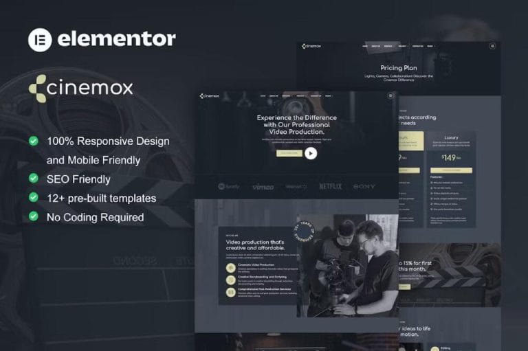 Cinemox – Elementor Pro Template Kit for Video Production Company