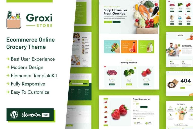 Groxi: Grocery Store Elementor Template Kit for Online Supermarkets