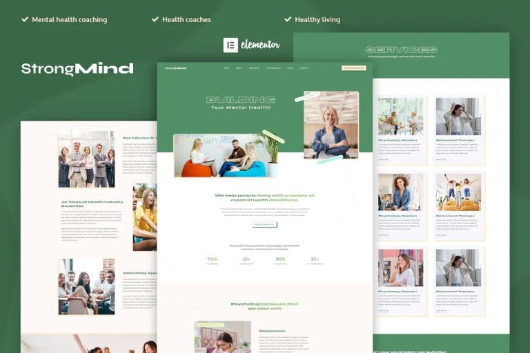 StrongMind – Mental Health & Psychologist Elementor Pro Template Kit