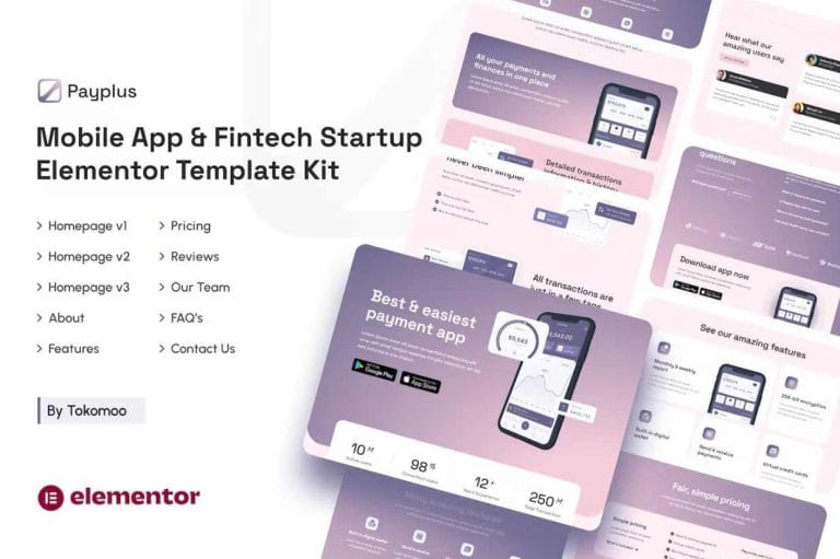 Mobile App & Fintech Startup: Elementor Template Kit for Tech Innovators