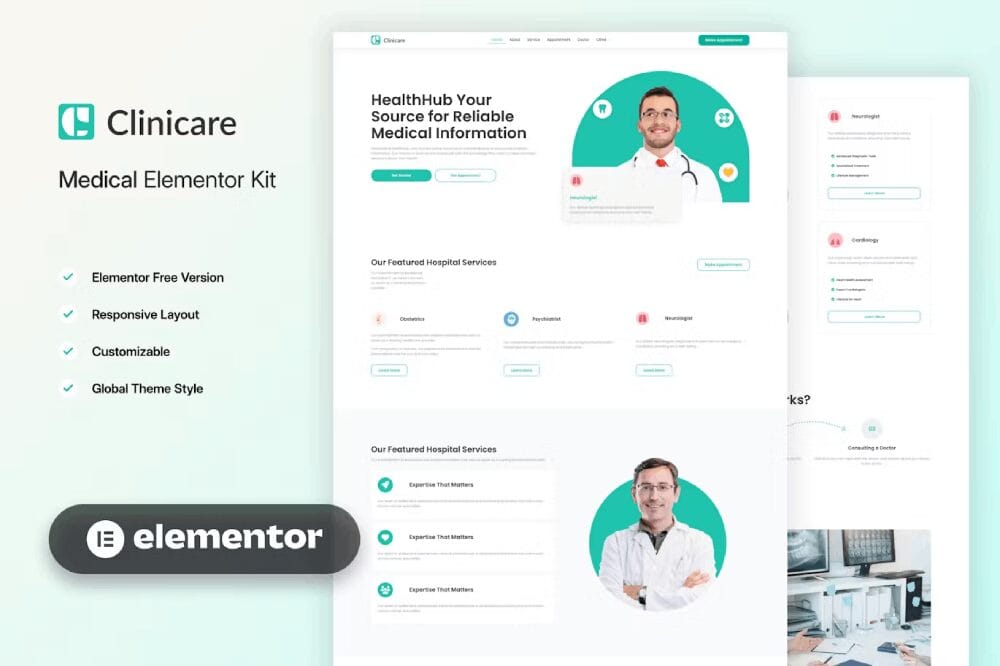 Clinicare – Elementor Template Kit for Health & Medical Services. This all-in-one solution provides everything you need to build a professional, responsive, and engaging medical website. With its easy setup, extensive customization options, and SEO-friendly design, Clinicare is the ideal choice for healthcare professionals looking to establish a strong online presence. Start building your dream medical website today with Clinicare.