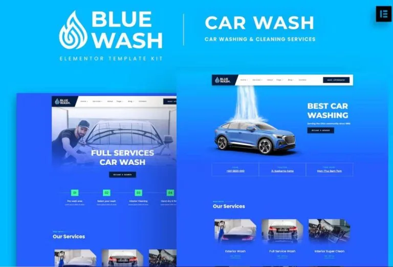 Bluewash: Elementor Template Kit for Car Washing & Cleaning Services